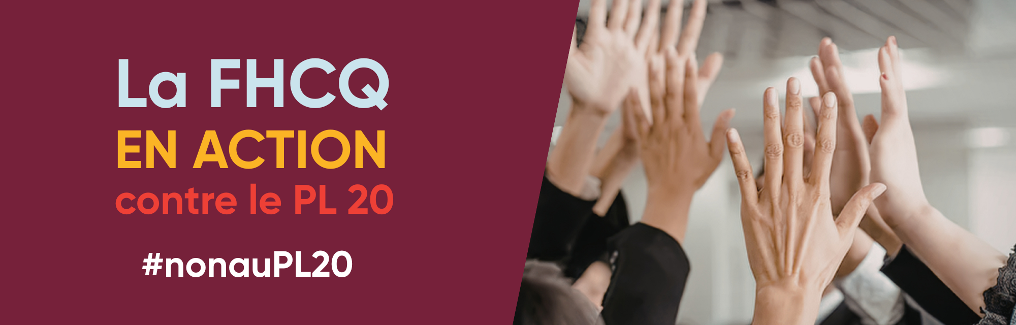 Le projet de loi 20 est jugé inacceptable par la Fédération. Une pétition déposée à l'Assemblée nationale est en cours. La FHCQ sera présente en commission parlementaire et a besoin d’un appui populaire massif.